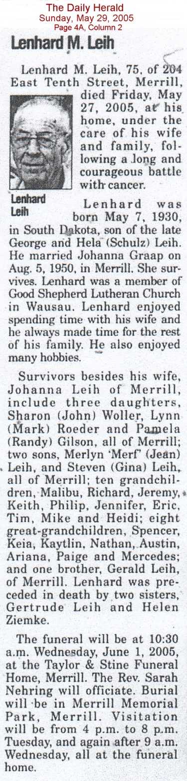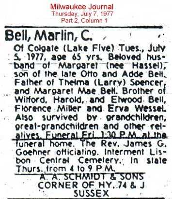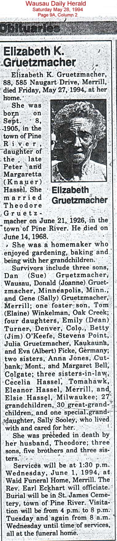 Died: Monday May 15, 2000 in Wausau Hospital of congested heart failure; remains cremated.
